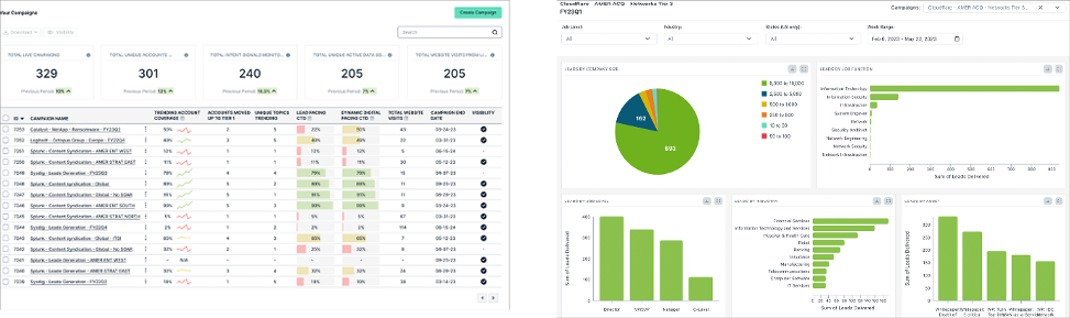 - Gain transparency with comprehensive, granular reporting that goes beyond the typical metrics to help you understand account, buying-group and persona-level engagement, asset performance, intent signal trends, and more.