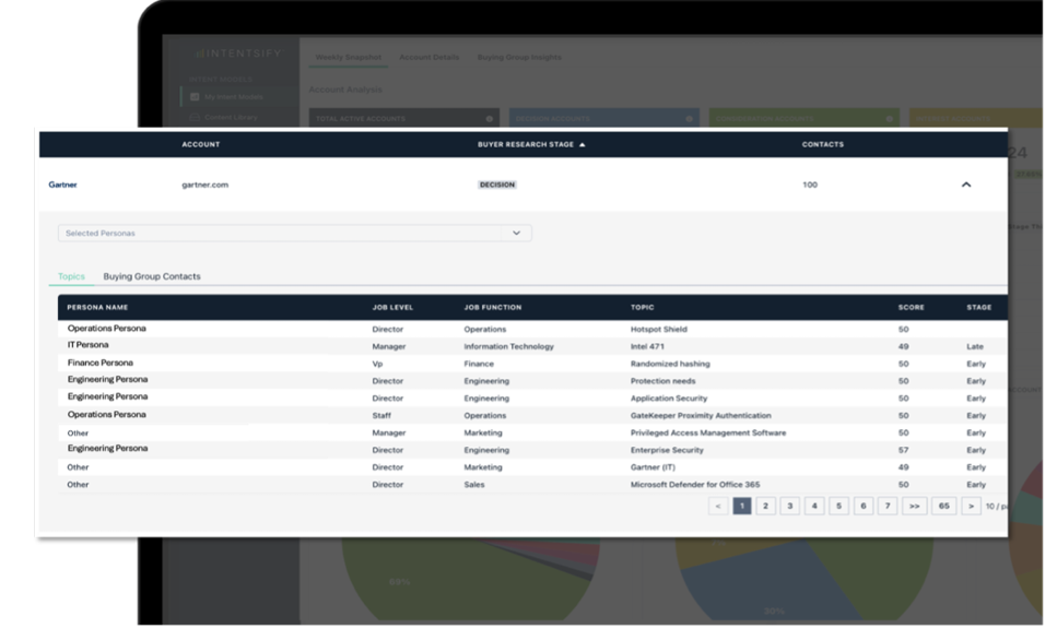 - Monitor the evolving research interests of targeted personas to prioritize and tailor messaging to their varying and evolving needs with Buying Group Intent.