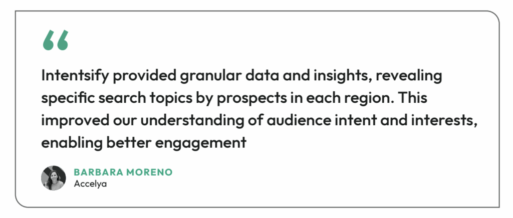 B2B teams don’t need another platform. They need accessible data in the systems they use every day and scalable intent-fueled media programs that deliver results. Built on a foundation of AI, Intensify is free of technology debt and gives customers the flexibility to operationalize intent data without disrupting their current processes.